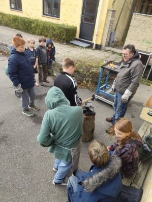 Vi har natur og teknik, hvor vi arbejder med begreber. Nu er det grundstoffer, metal, jern. Hvad sker der, når vi varmer jern op? Kan man forme det? Hvor varmt bliver det og en masse andet 😀😀👍🔨🔨